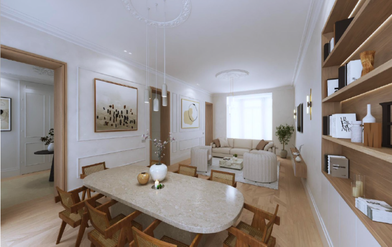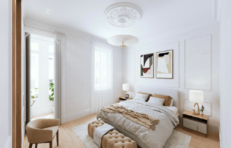 La vivienda se ubica en la planta primera con altura de segundo de un edificio de esAlo clásico del Barrio de Salamanca.